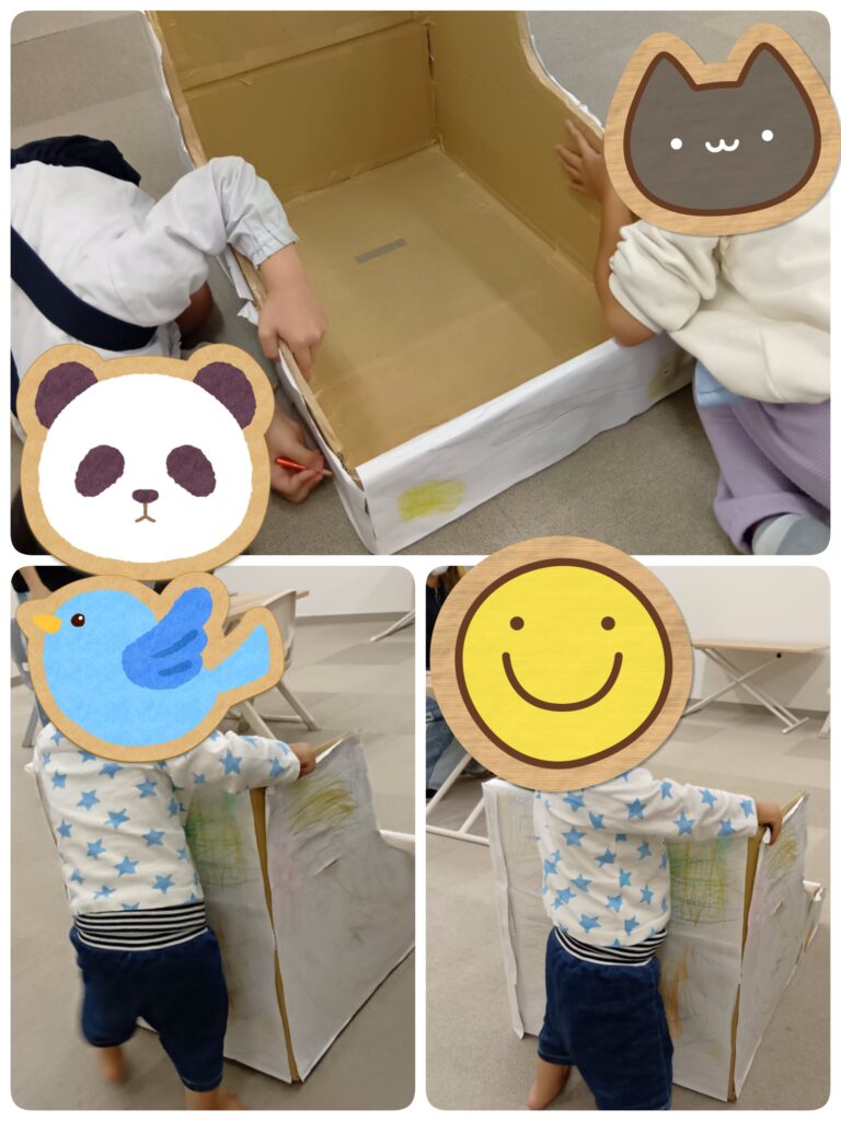 みんなで絵を描いた手作り手押し車🚗