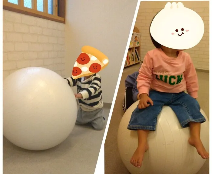 慣れてきたらバランスボールに座ることにも挑戦🌼