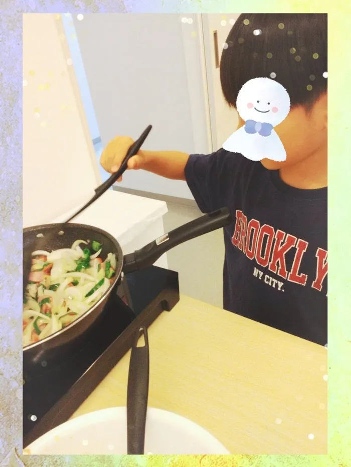 玉ねぎ🧅、ピーマン🫑、ウインナー🌭を