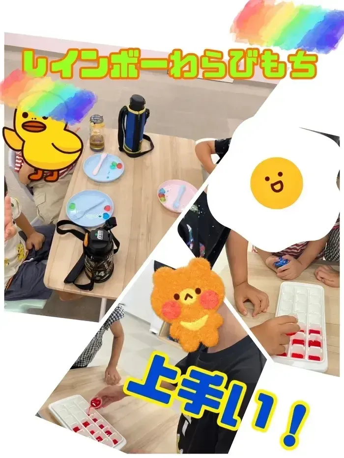 🌈レインボーわらびもち🌈をみんなで作りました👩🍳👨🍳